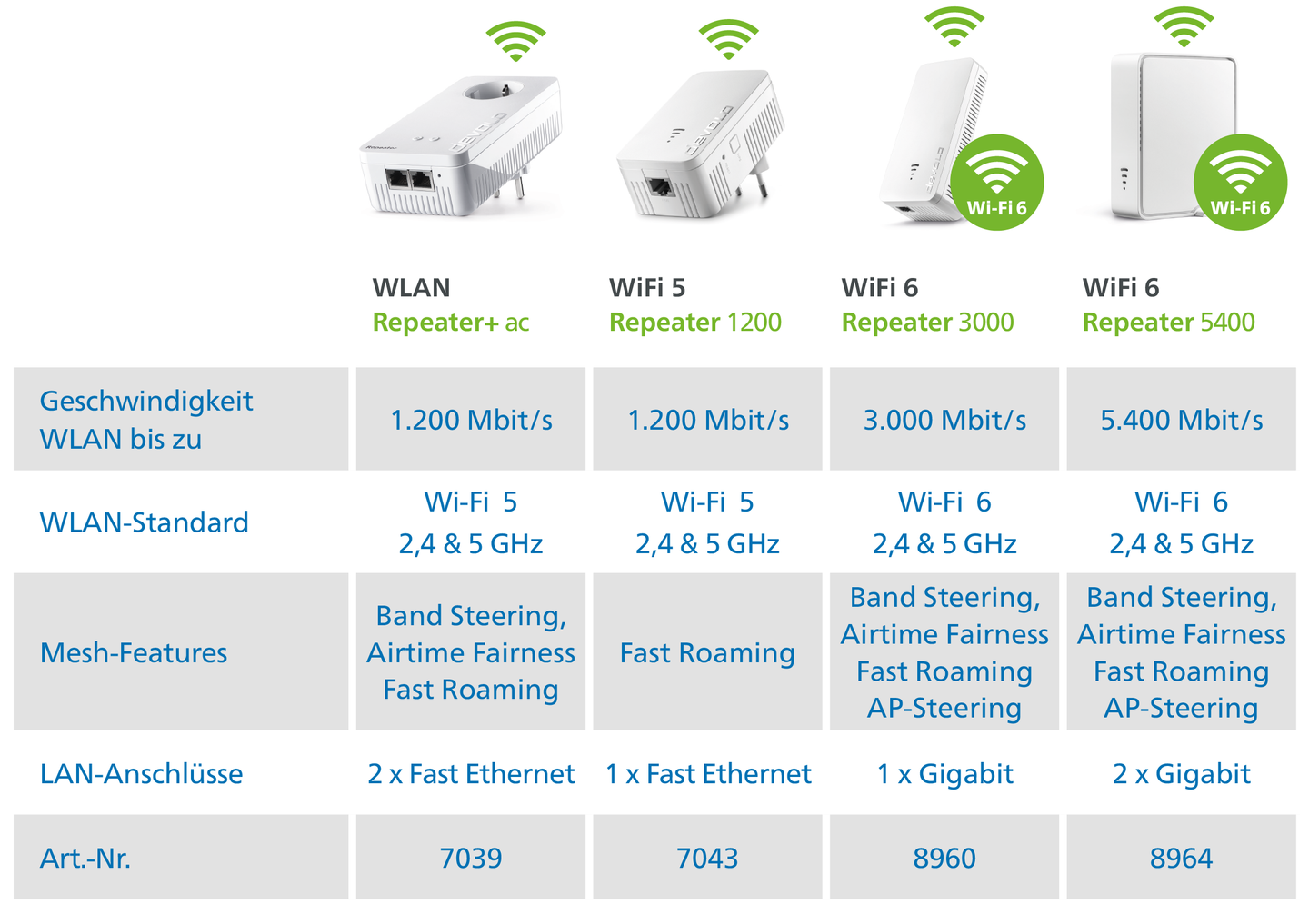 Das Portfolio für Fachhandelspartner umfasst zwei Produktkategorien: Die bewährten Powerline-WLAN Produkte (devolo Magic) verteilen das Internetsignal über die Stromleitung zuverlässig im ganzen Zuhause – durch Decken und Wände. Die devolo Repeater verstärken das Router-WLAN im Handumdrehen und eignen sich für die schnelle WLAN-Verlängerung auf einer Etage.