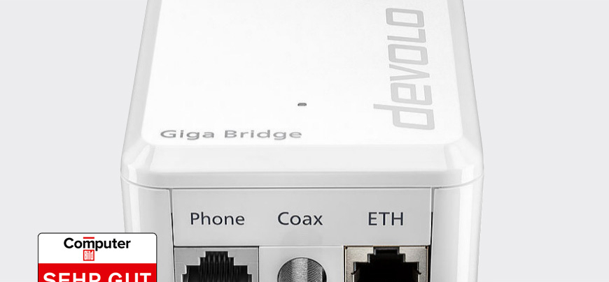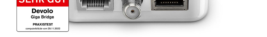 Sie müssen nicht umständlich Glasfaser im Haus verlegen. Die devolo Giga Bridge transportiert das Signal vom Glasfaser- netzabschluss im Keller einfach über die bestehende Telefon- oder Koaxialleitung zum gewünschten Router-Standort – unkompliziert und mit Gigabit-Geschwindigkeit.